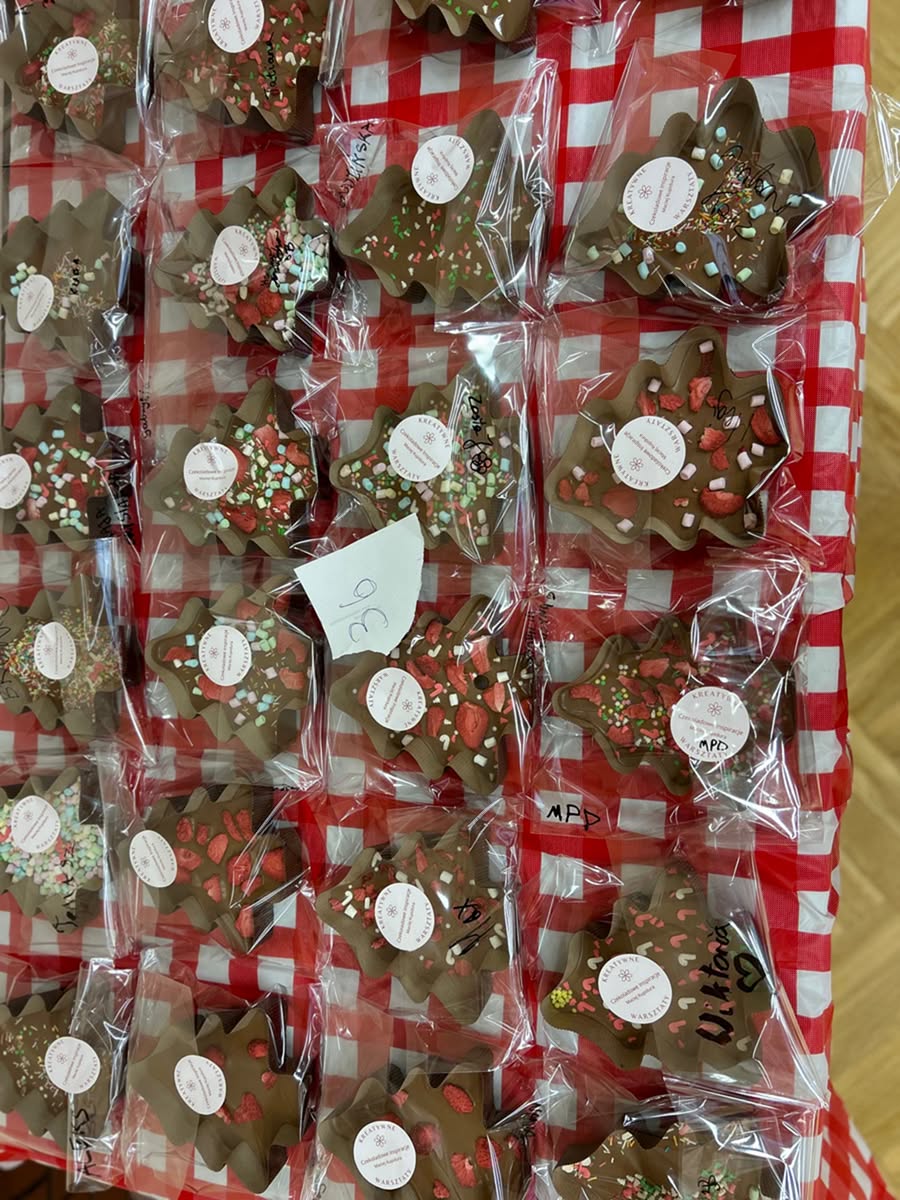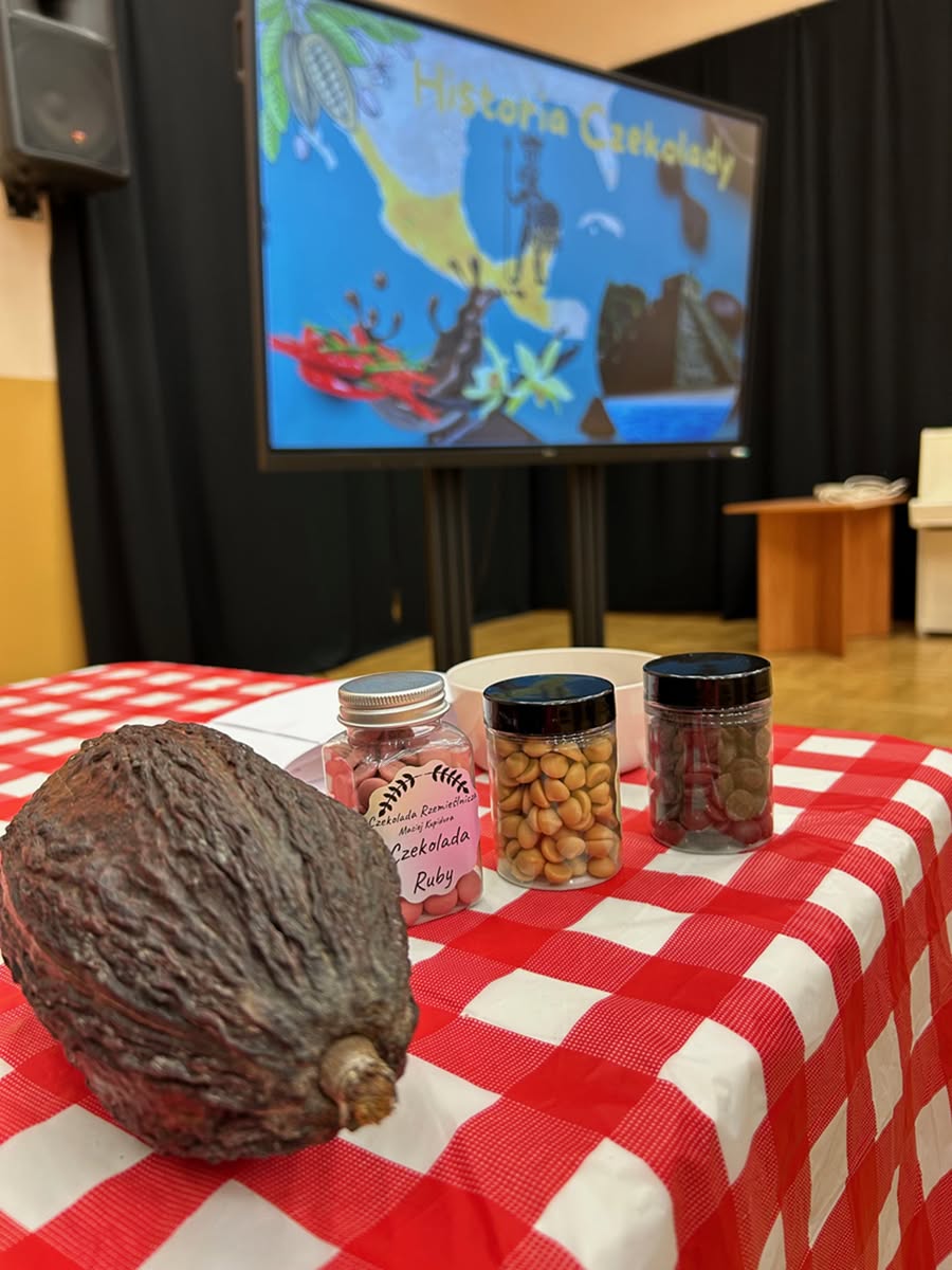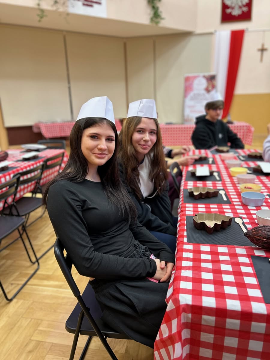3 grudnia 2025 r. już w przedświątecznej atmosferze odbyły się dla wszystkich uczniów LO czekoladowe warsztaty. Były informacje o historii czekolady, była degustacja różnych rodzajów czekolady i oczywiście tworzenie własnej tabliczki czekolady – w kształcie choinki. Było ciekawie i słodko.