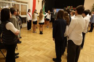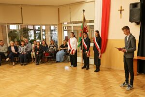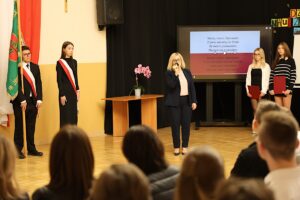 W naszym kameralnym Liceum ten Dzień łączy całą społeczność: nauczycieli, rodziców i uczniów, a uroczystość podzielona jest na dwie części. Podczas części oficjalnej uczniowie klasy pierwszej złożyli uroczyste ślubowanie na sztandar szkoły, które przyjęła p. Zofia Kowalczyk – dyr. ZSO w Brwinowie.