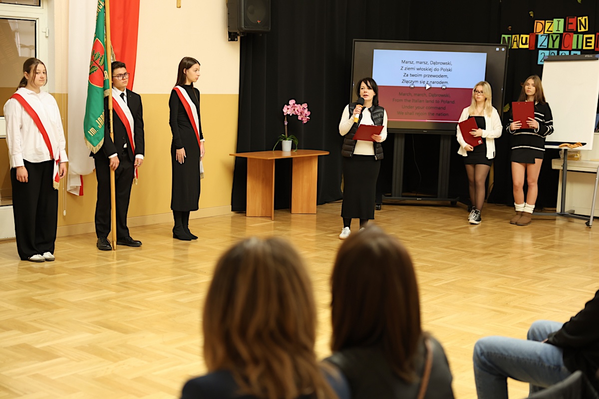 Dzień Edukacji sprzyja refleksji nad pracą nauczycieli i pedagogów, a towarzyszą mu życzenia, które nauczycielom złożyli: p. Zofia Kowalczyk – dyr. ZSO, p. Renata Olecka – przedstawicielka Rady Rodziców oraz Zofia Jerzak i Lena Banaszczyk – przedstawicielki Samorządu Uczniowskiego.