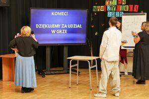 W części nieoficjalnej uczennice i uczniowie klasy IV zaprosili nauczycieli i uczniów do rywalizacji w zmodyfikowanej przez czwartoklasistów grze The Floor. Kategorie sprzyjały odgadnięciu pokazywanych na ekranie artefaktów, toteż gra dla nikogo nie była stresująca. Absolutną mistrzynią okazała się uczennica klasy I, która bez zająknięcia i w oszałamiającym tempie rozpoznała wszystkie pokazywane flagi państw.