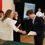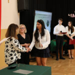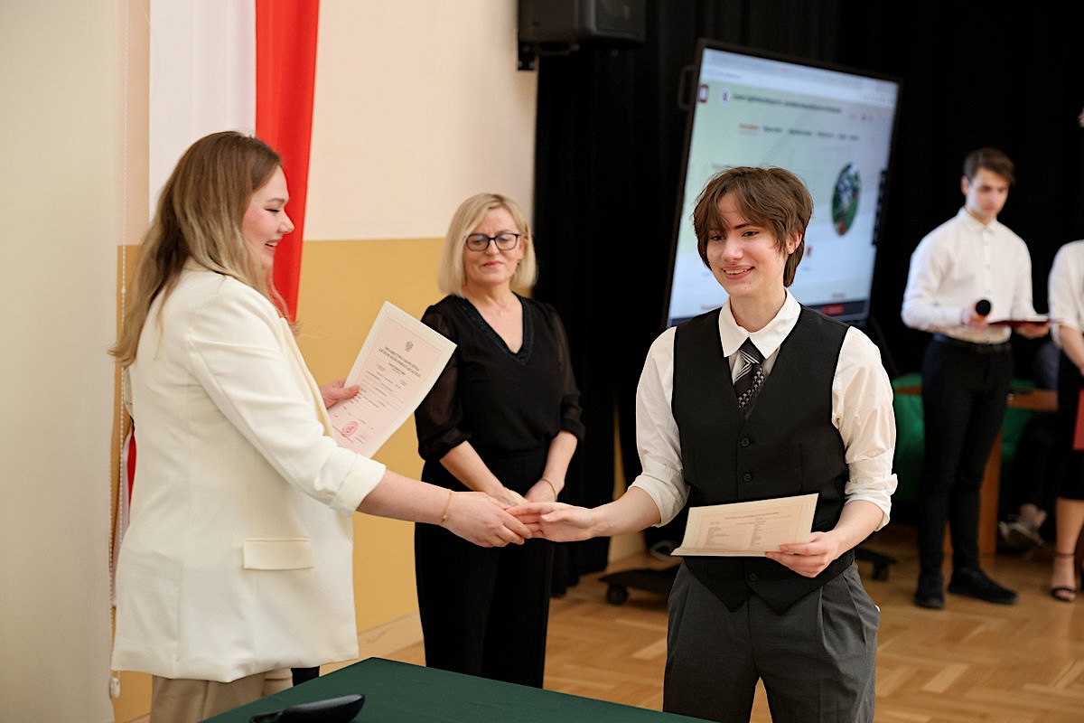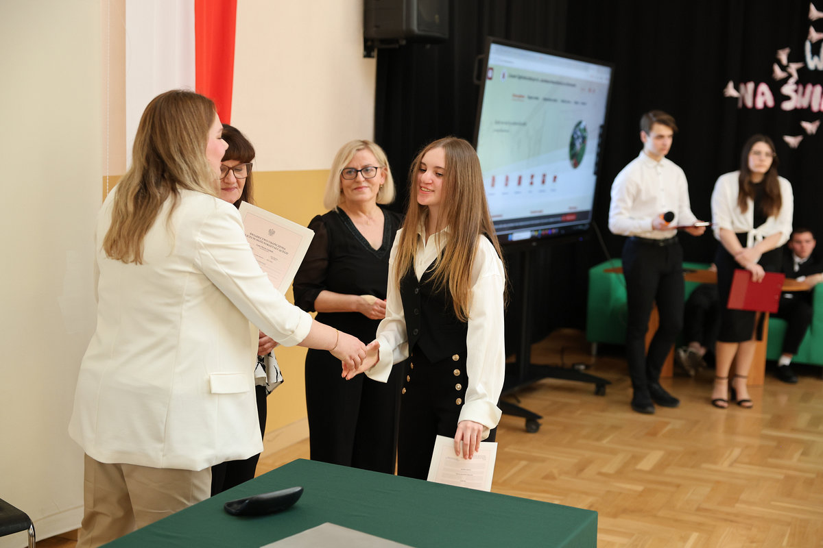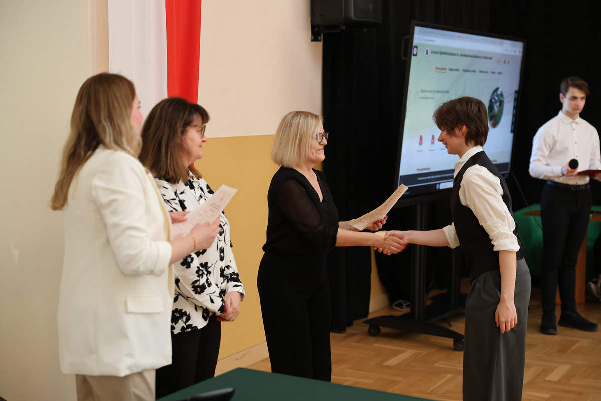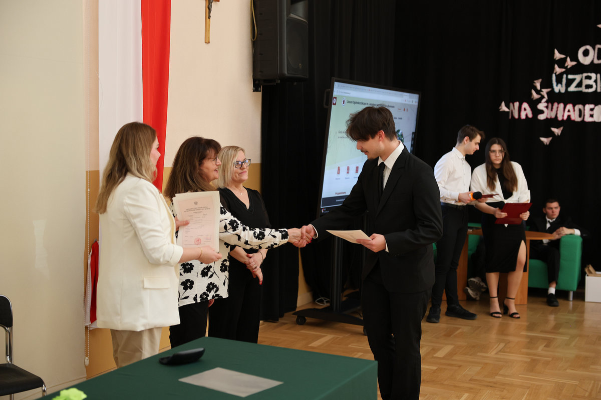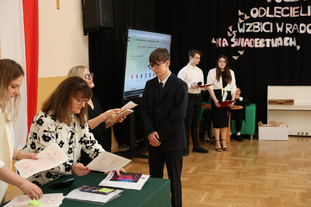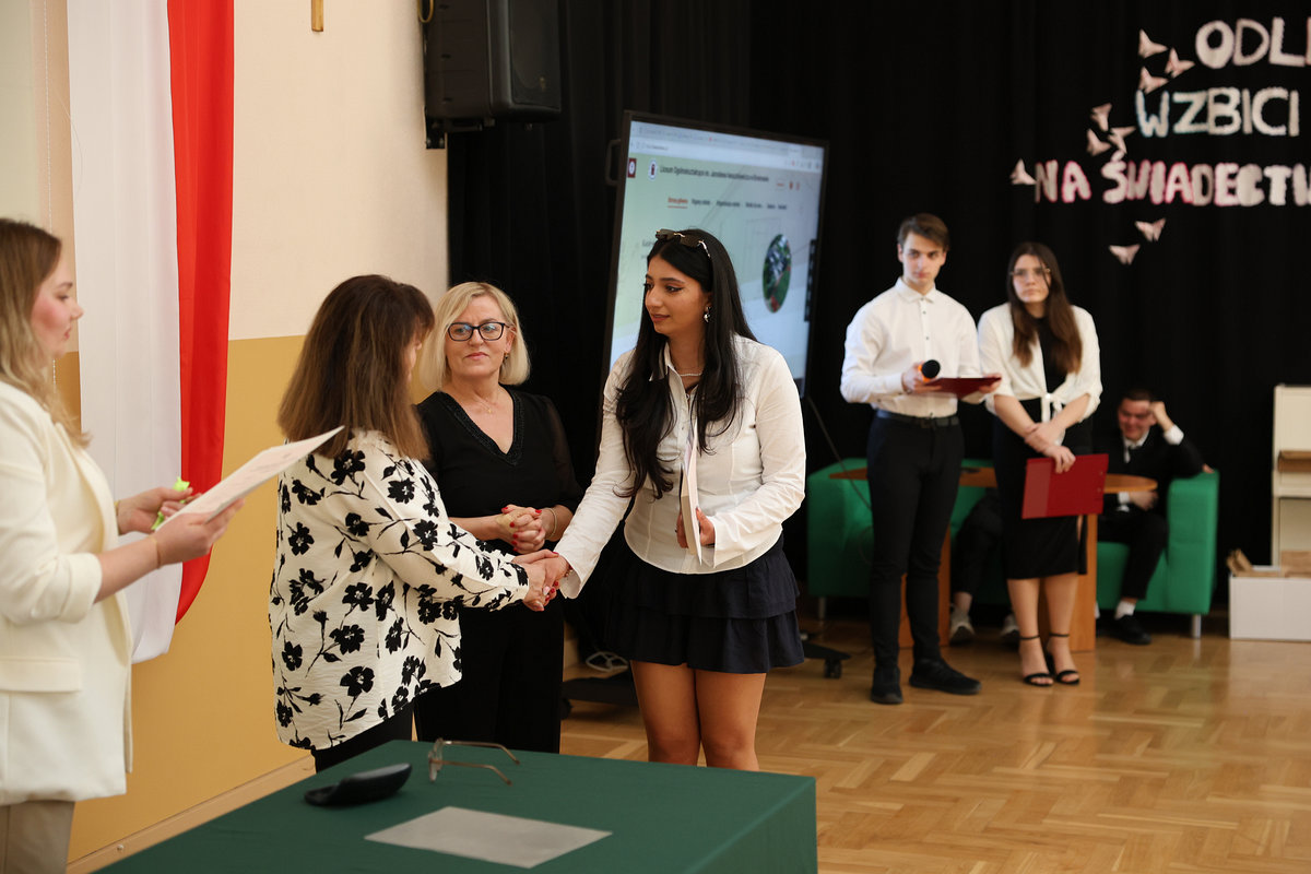 Podczas zakończenia roku szkolnego w części oficjalnej zostały wręczone nagrody i wyróżnienia uczennicom i uczniom, którzy przez cztery lata wykazali się szczególnym zaangażowaniem w życie szkoły oraz osiągnęli najlepsze wyniki w nauce. Pod adresem absolwentów popłynęły miłe słowa i życzenia od p. dyrektor ZSO Zofii Kowalczyk, p. wicedyrektor Katarzyny Baczyńskiej oraz przedstawicielki Rady Rodziców.