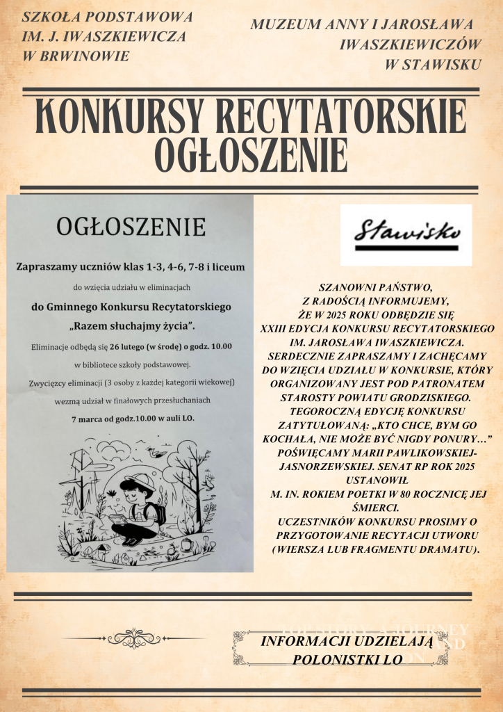 Zapowiedź konkursów recytatorskich. Zachęcamy do udziału.