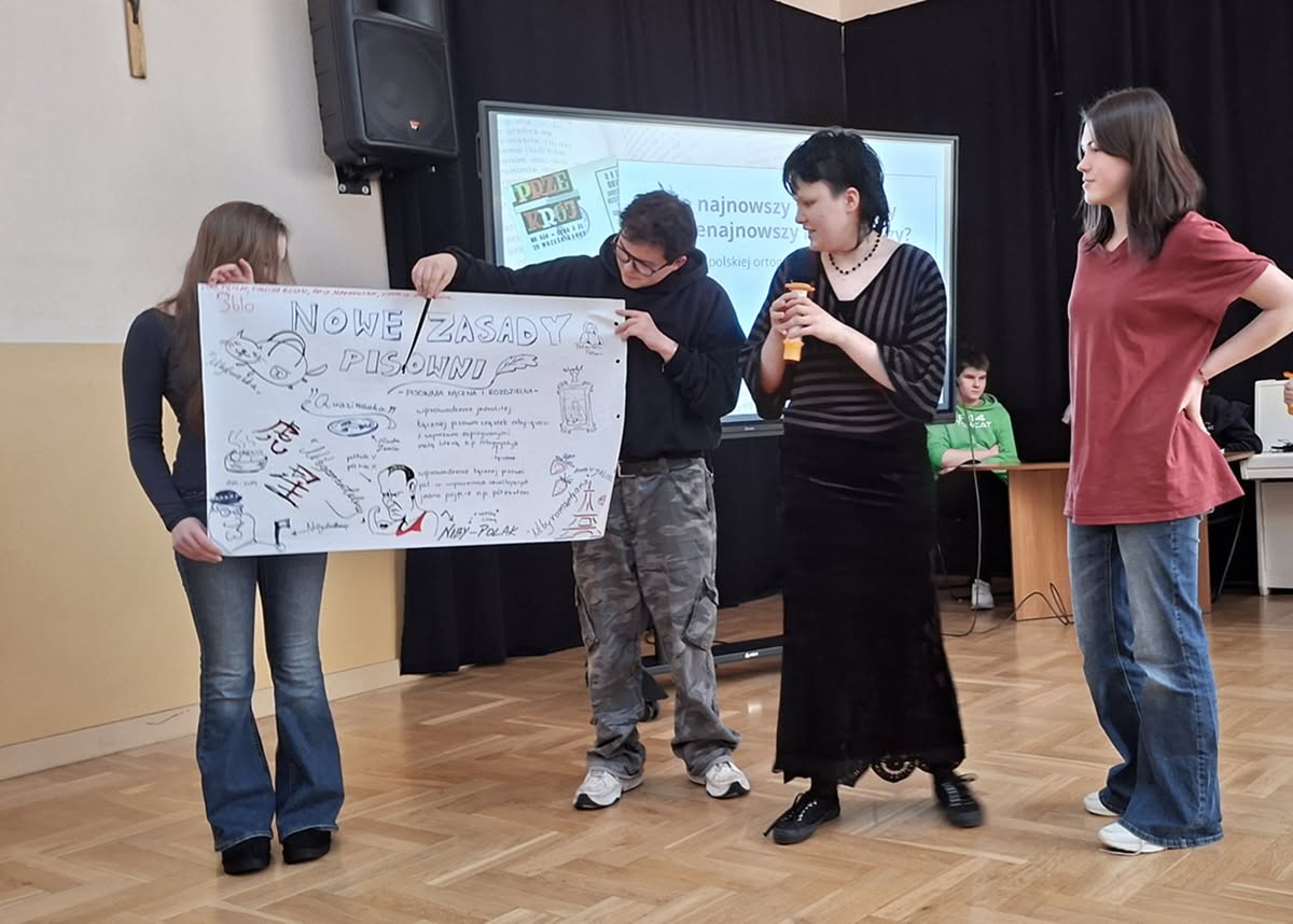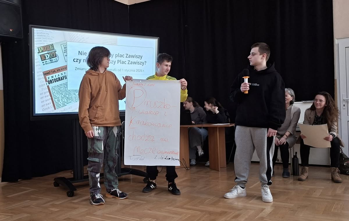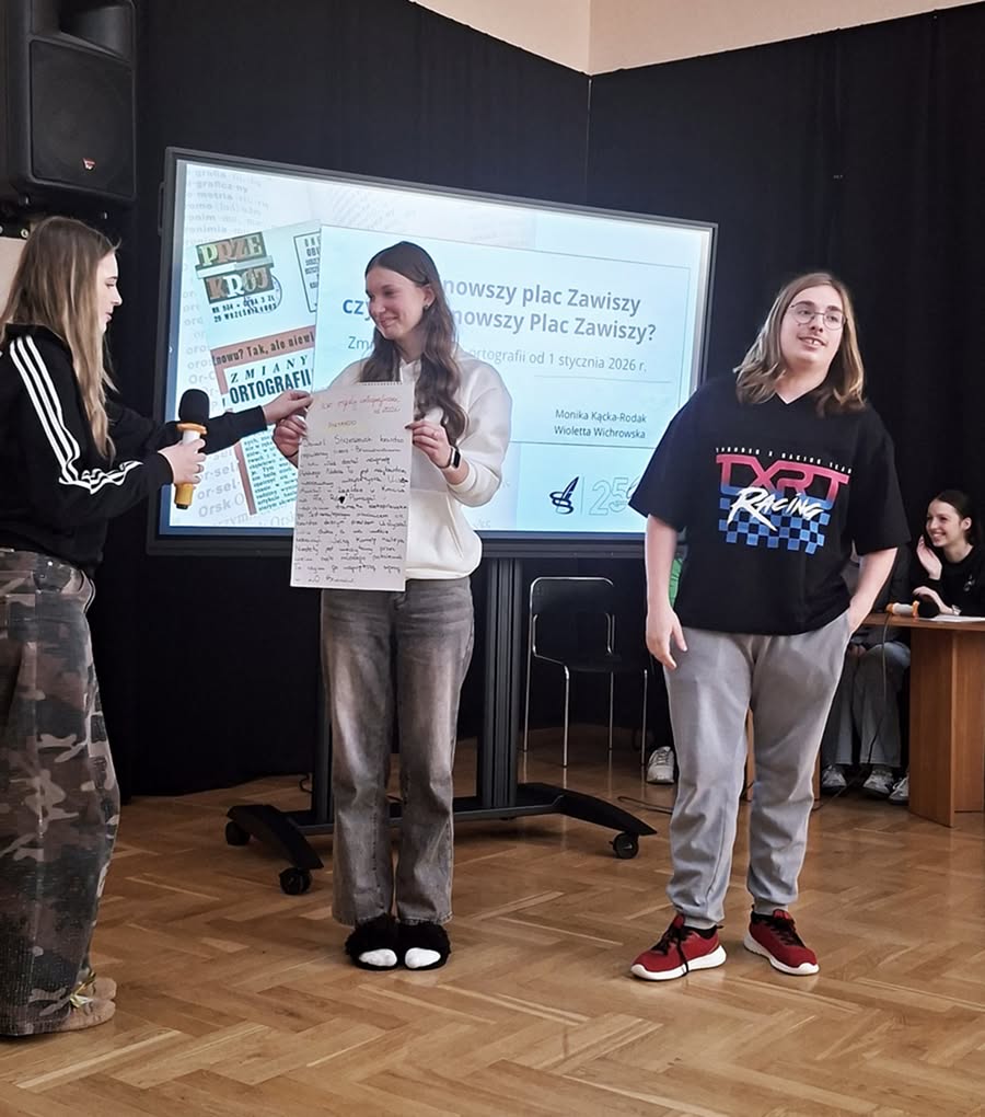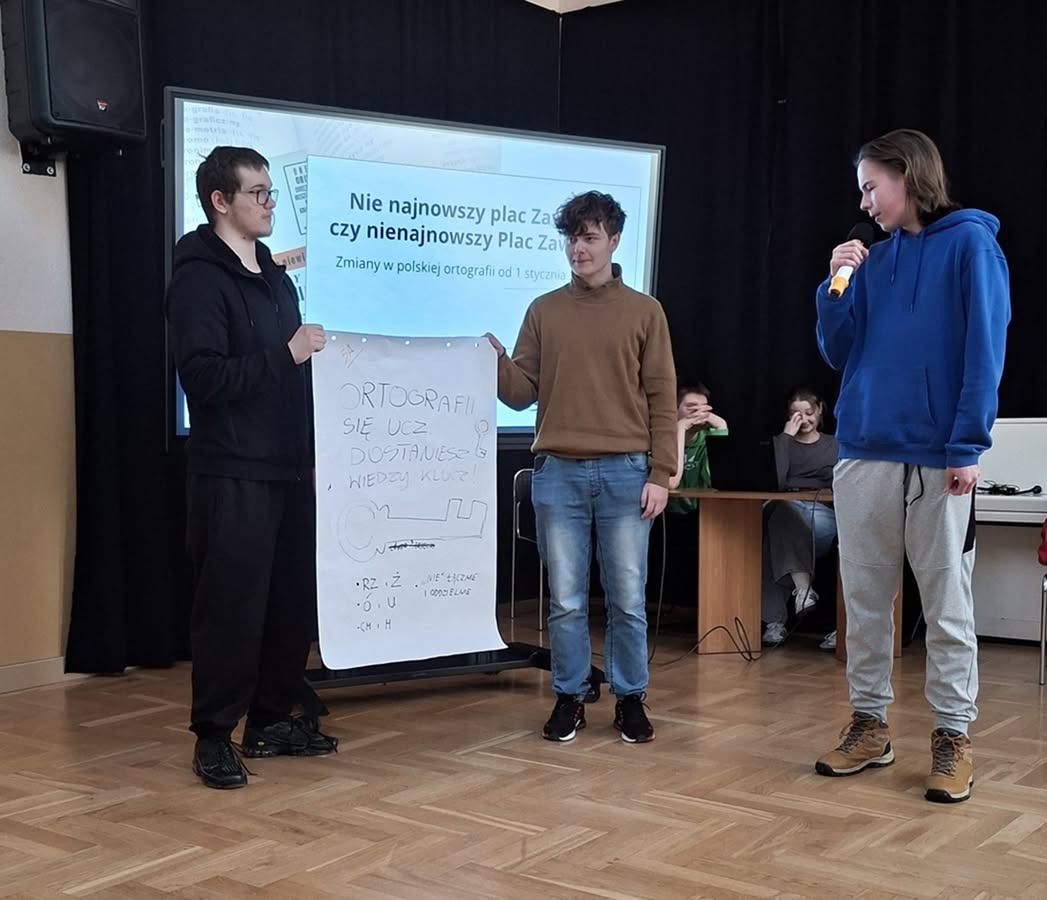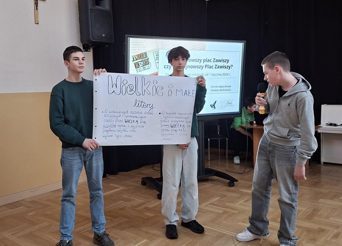 Międzynarodowy Dzień Języków Ojczystych przypadający na 21 lutego każdego roku obchodziliśmy 19.02.26 pod hasłem: zmiany, zmiany… Inspiracją dla polonistek przygotowujących MDJO była decyzja Rady Języka Polskiego ustanawiająca nowe reguły pisowni od 1 stycznia 2026 r. Maturzyści zostali uspokojeni, ponieważ nowe reguły będą obowiązywały na egzaminach dopiero od roku 2031 – do tego czasu maturzyści mogą stosować zarówno stare, jak i nowe zasady.
