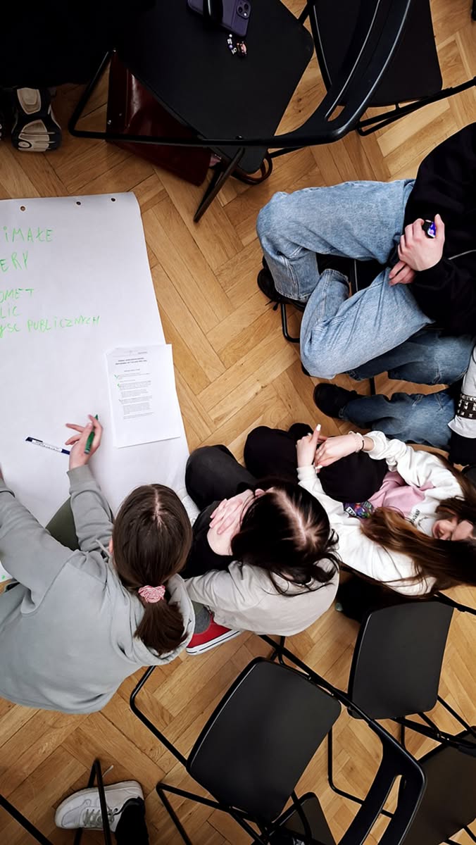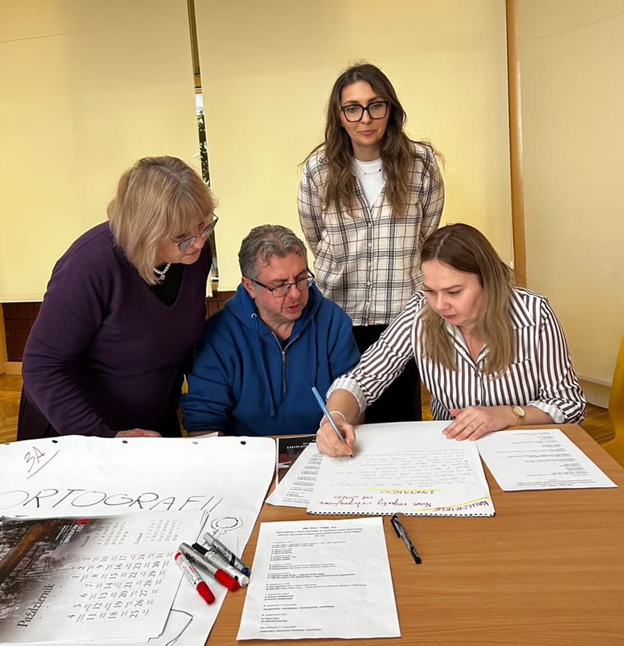 Poznawanie nowych reguł odbywało się poprzez pracę w grupach – tworzenie plakatów informacyjnych oraz pisanie twórczego dyktanda z wykorzystaniem poprawnego zapisu.