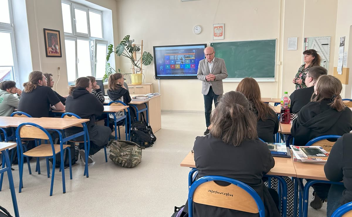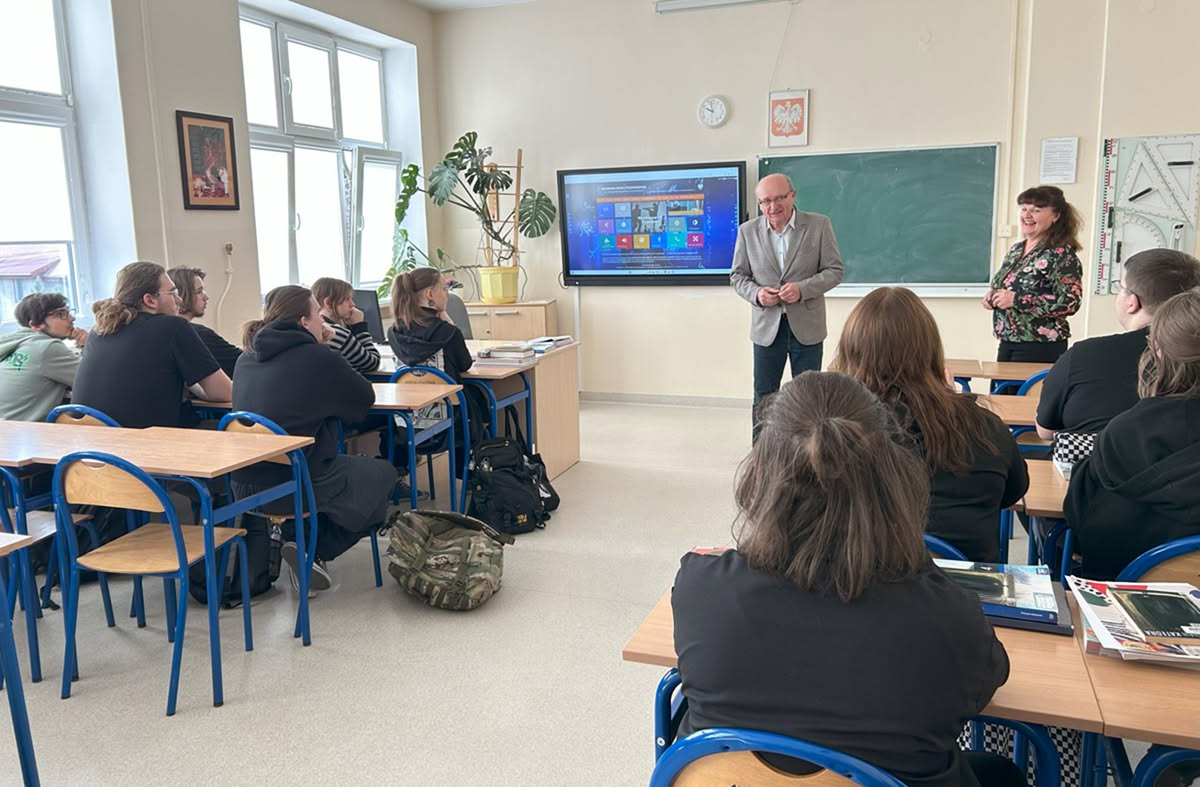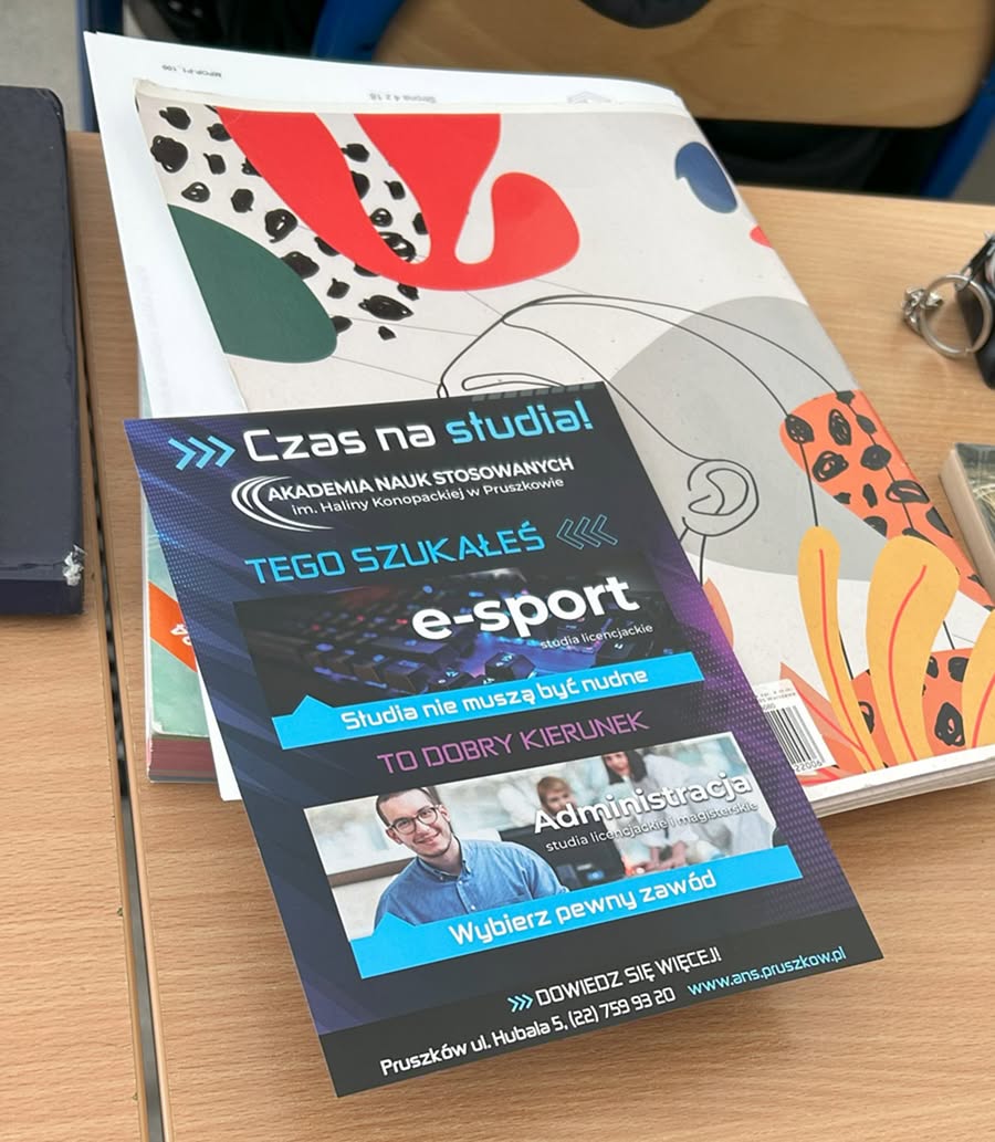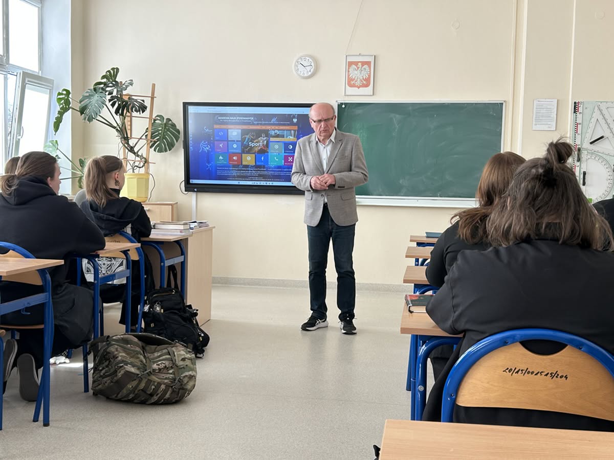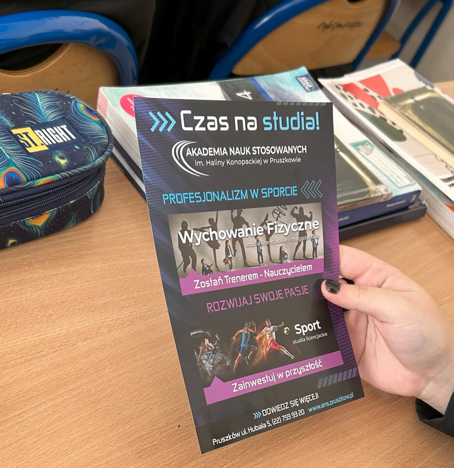 8.04.2025 r. uczniowie kl. IV zapoznali się z ofertą edukacyjną Akademii Nauk Stosowanych im. Haliny Konopackiej w Pruszkowie, wcześniej Wyższej Szkoły Kultury Fizycznej i Turystyki (https://ans.pruszkow.pl/).  Przedstawiciel uczelni, pan Andrzej Okurowski, w interesujący sposób mówił nie tylko o Akademiii, którą reprezentuje, ale również o wyzwaniach na rynku pracy.