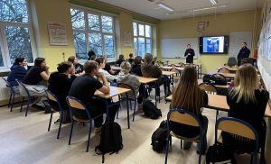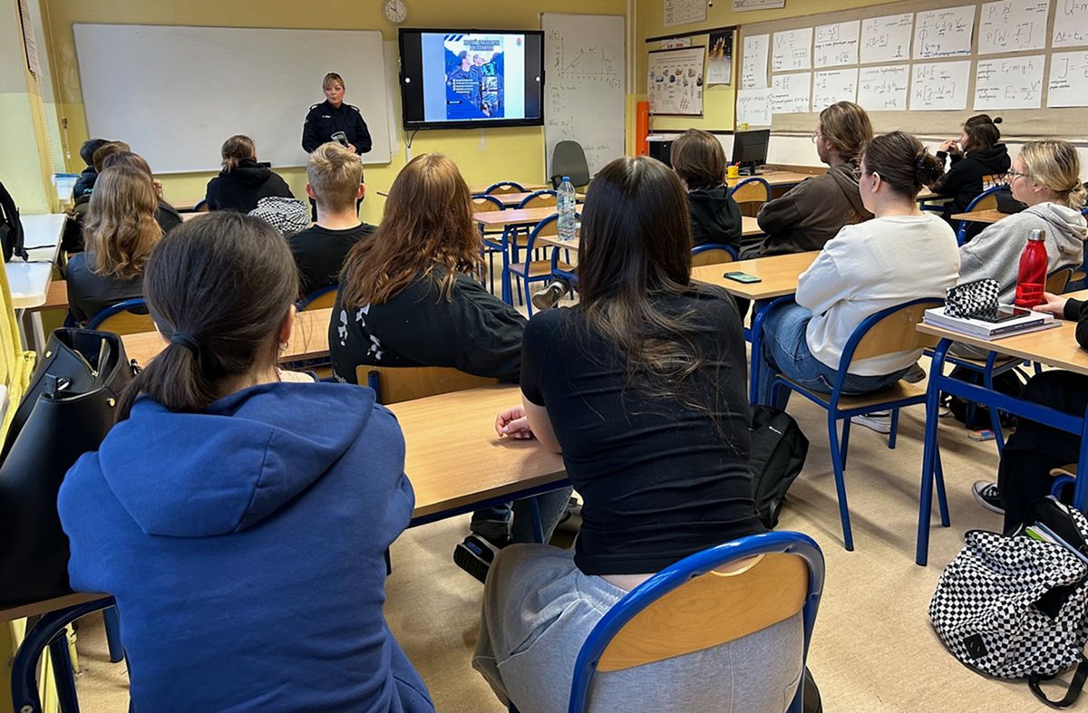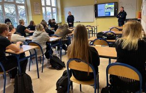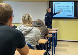 4.12.2024r. policjanci z KPP w Pruszkowie spotkali się z uczniami klasy IVa LO. Oficer Prasowy asp. szt. Monika Orlik oraz dzielnicowy asp. Marcin Furman mówili o specyfice zawodu policjanta, a także przedstawili możliwości zatrudnienia i rozwoju.