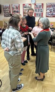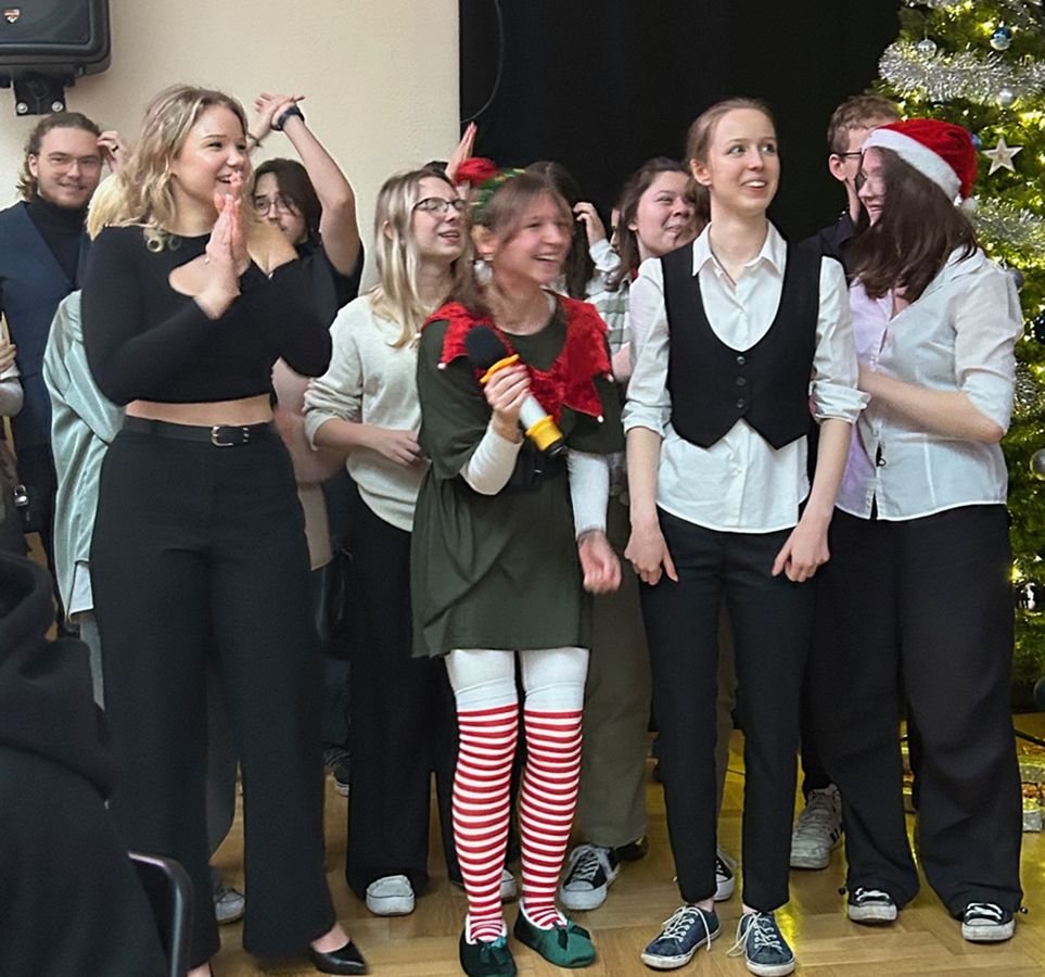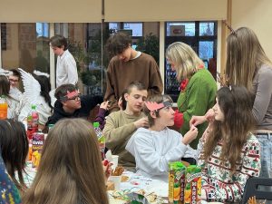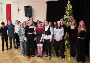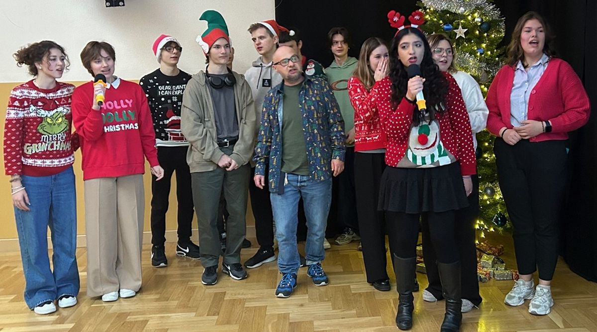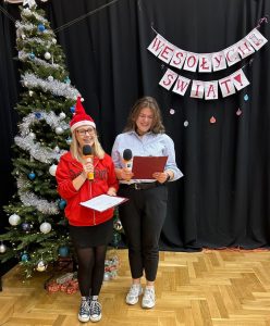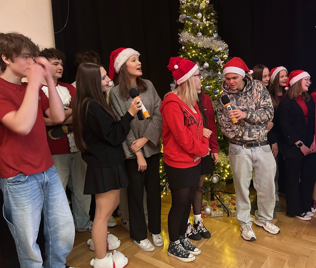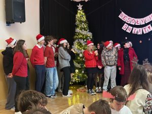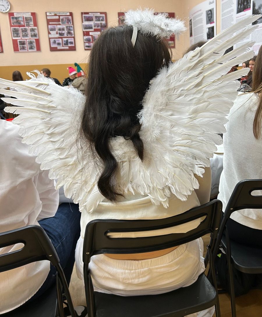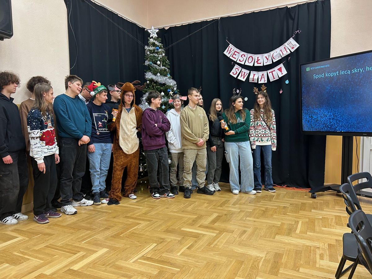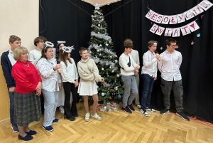 Świąteczne spotkanie nabrało wyjątkowej aury dzięki strojom oraz wykonanym osobno przez każdą klasę oraz nauczycieli kolędom. Wigilię zakończyliśmy wspólnym śpiewaniem pastorałki.