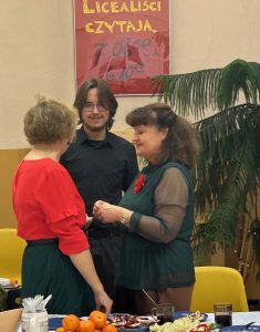Jak nakazuje tradycja, dzielimy się opłatkiem i dobrym słowem. P. Zofia Kowalczyk – dyr. ZSO oraz p. Katarzyna Baczyńska, z-ca dyr. ds. Liceum złożyły życzenia wszystkim uczestnikom spotkania. Życzenia przekazał również Samorząd Uczniowski.