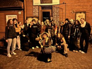 W czwartek rano przyjechaliśmy do Białegostoku, gdzie spędziliśmy trzy godziny na zwiedzaniu miasta z przewodnikiem, który ciekawie opowiadał o jego historii. Następnie pojechaliśmy do Supraśla, gdzie mieliśmy nocleg. Wieczorem czekała nas wyjątkowa atrakcja – emocjonujący spacer z pochodniami po Puszczy Knyszyńskiej. Po powrocie do ośrodka wspólnie przygotowaliśmy kolację i spędziliśmy miły czas na klasowej integracji.